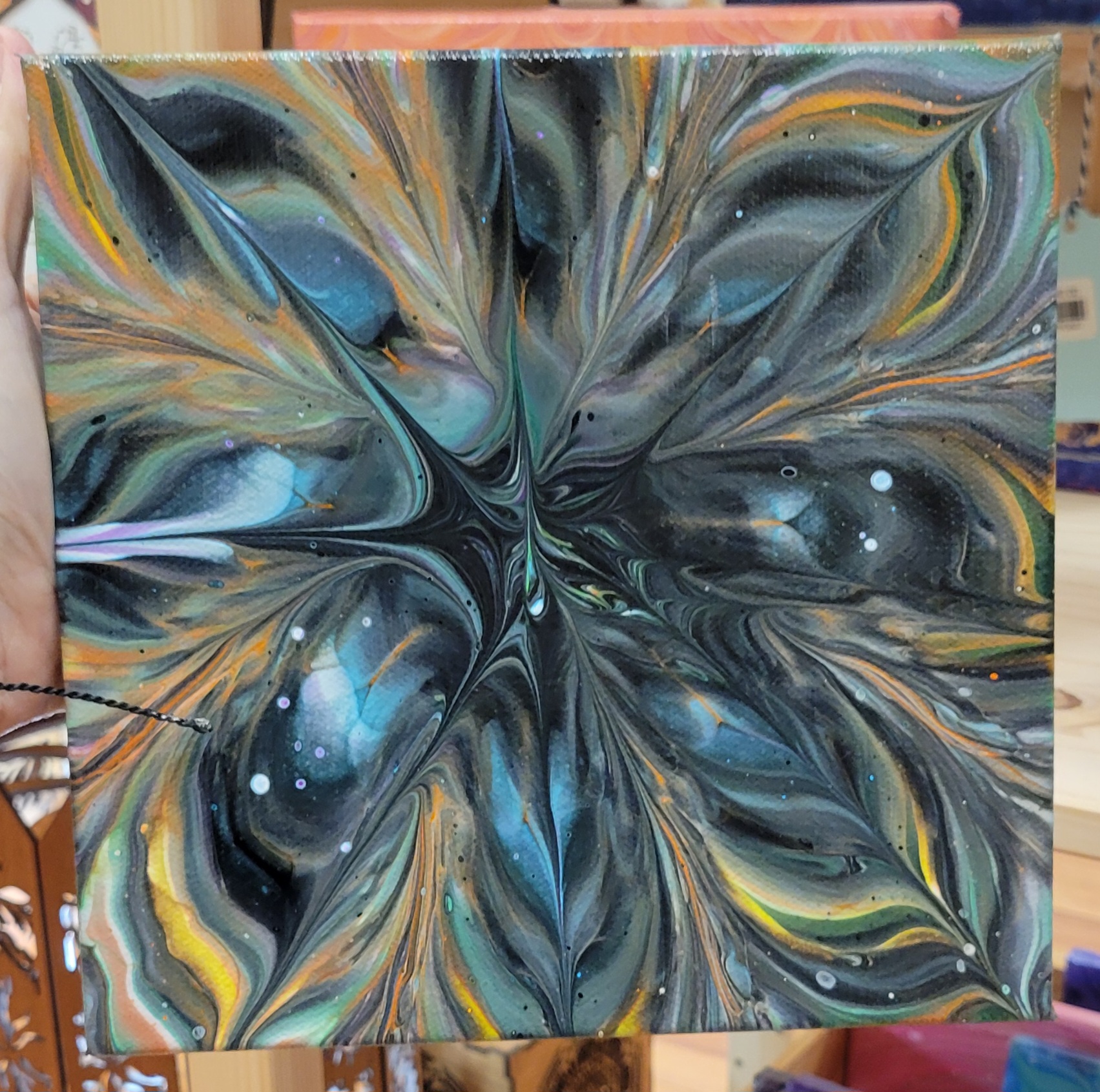 After my crisis counselor shifts, I always looked for ways to decompress after my shifts. I found fluid art painting through YouTube and it brought a sense of ease and calm so I could fall asleep. I started dabbling in this art last summer and it has been so fulfilling and joyful, such a release. Friends and family know how important mental health awareness is to me and I wanted to share that through my art. If I can bring joy and peace to anyone with this art that playfully flows across the canvas, that fills my soul.